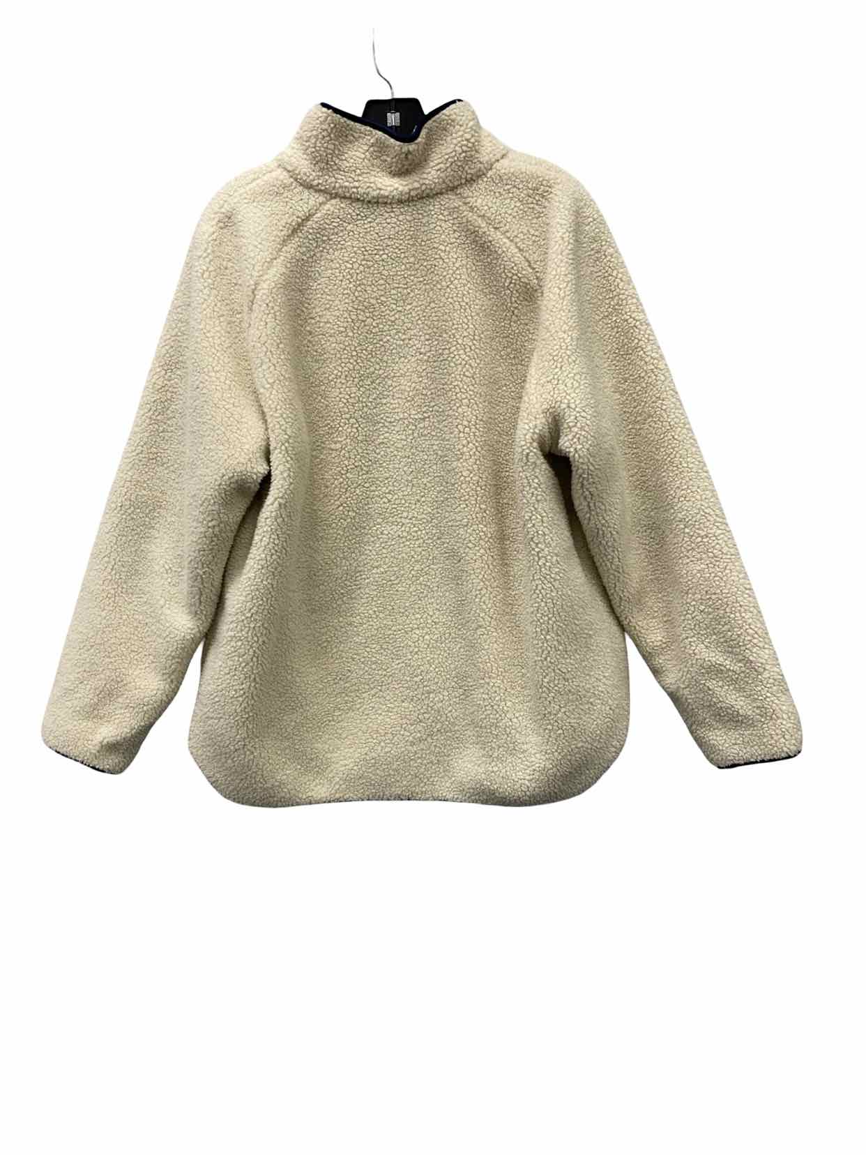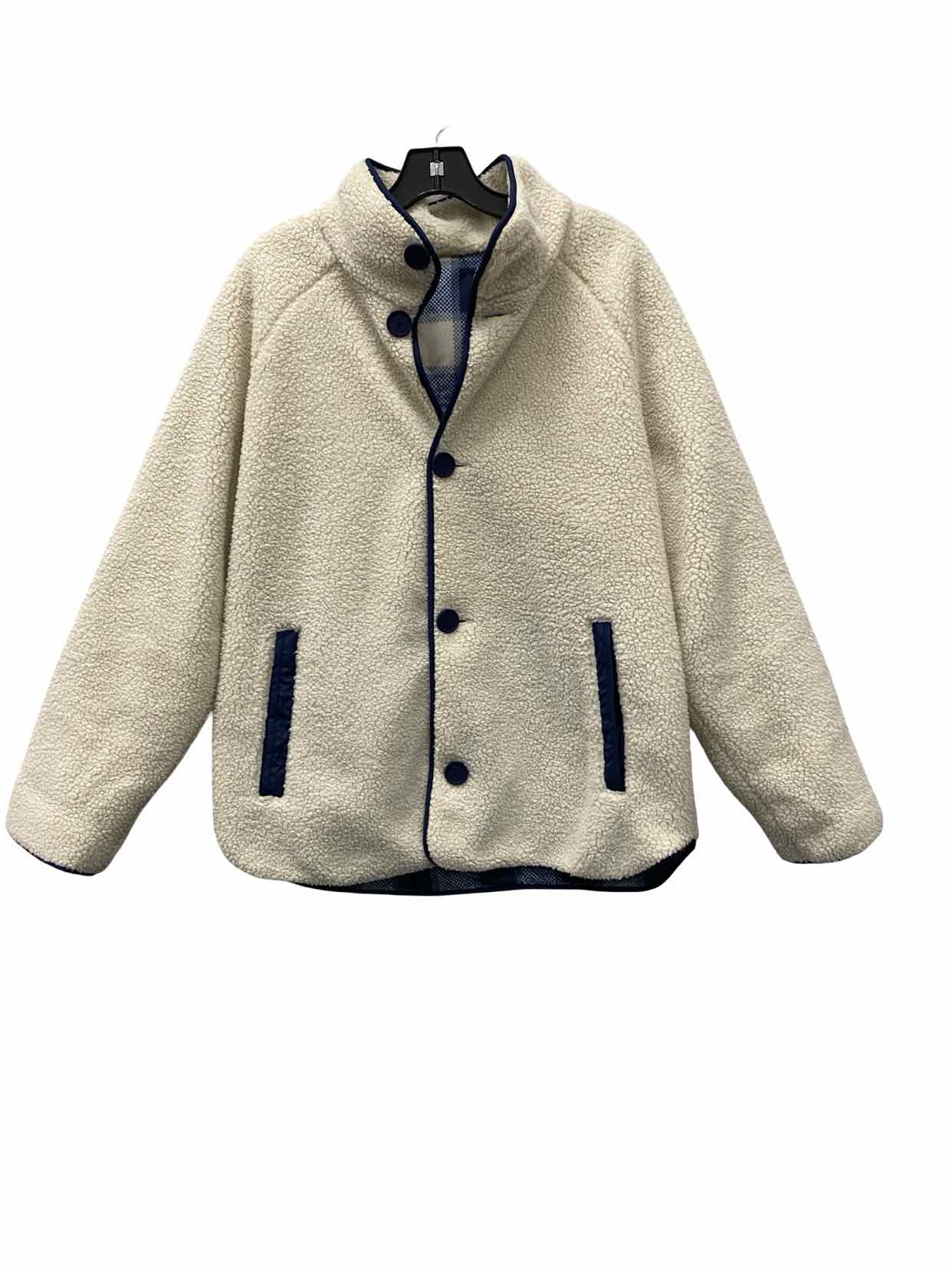 Lands End Size M Cream Sherpa Fleece Blue Plaid Reversible Jacket (Outdoor)