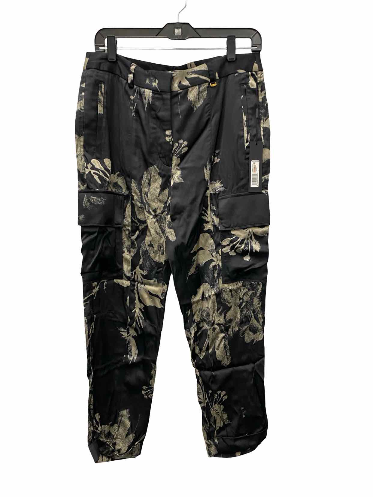 Donna Karan Size 12 Black Floral Satin Pants