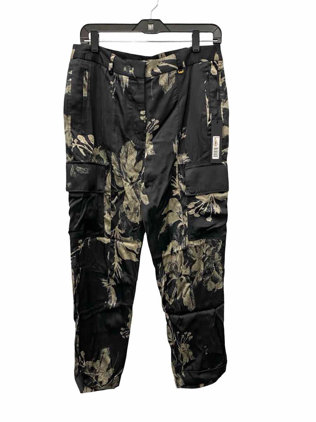 Donna Karan Size 12 Black Floral Satin Pants