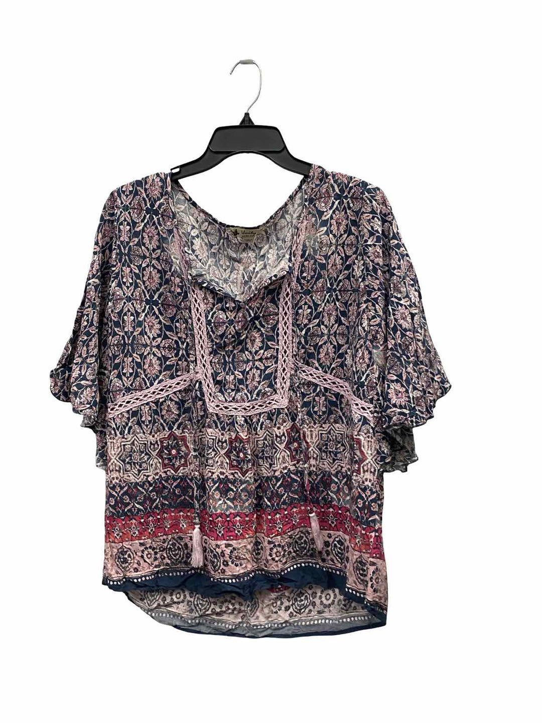 Unity Size 1X Purple Multi Print 100% Viscose Short Sleeve Shirts