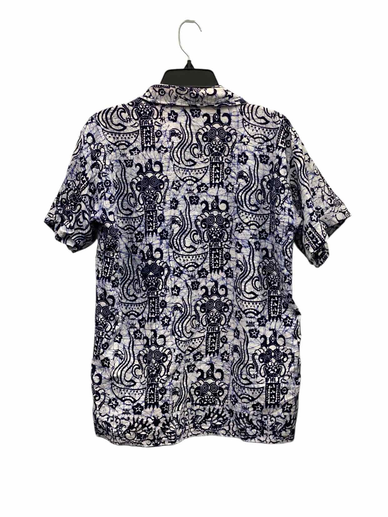 Bali Bagus Batik Size L Blue White Print 100% cotton Short Sleeve Shirts