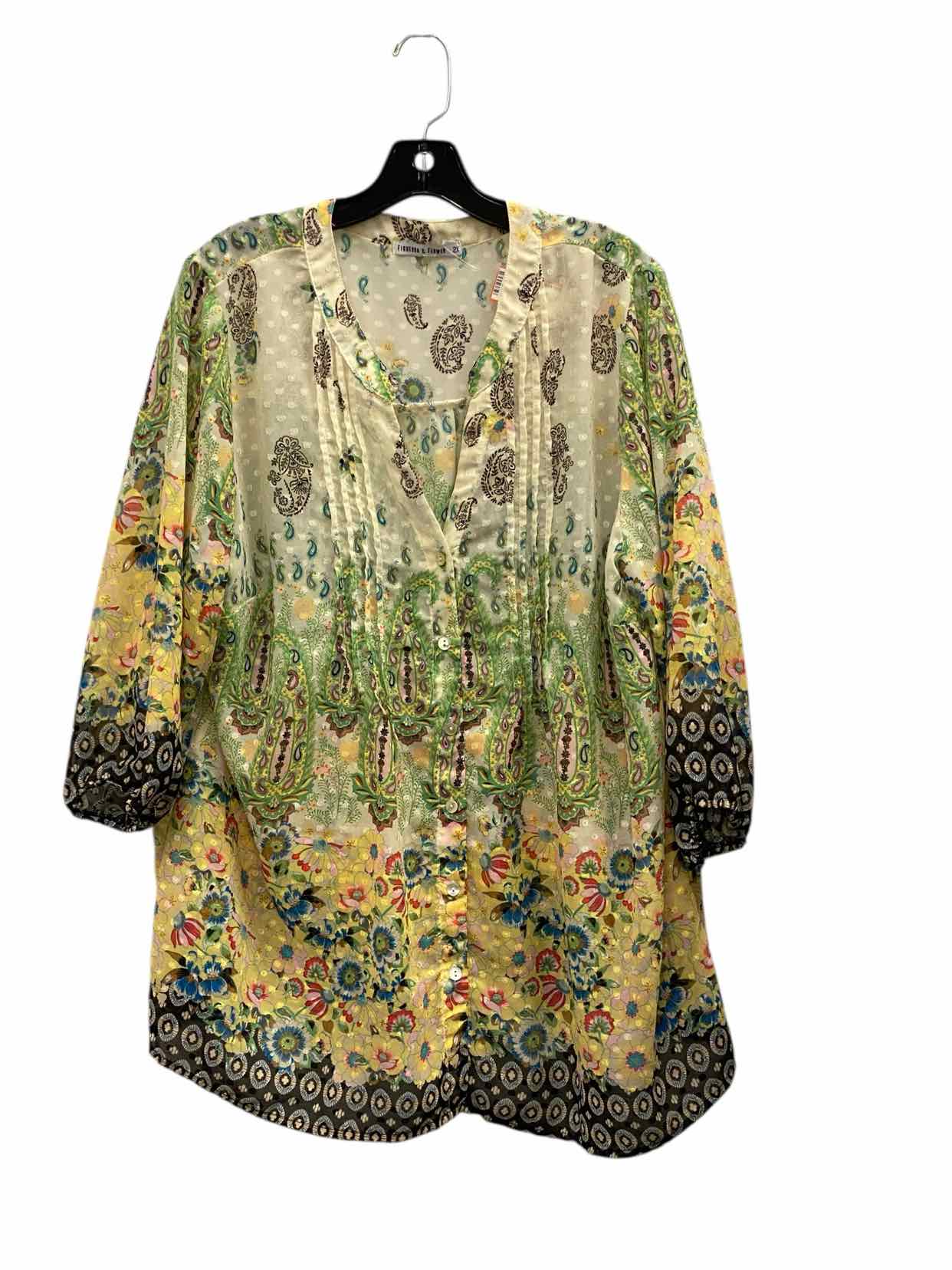 Figueroa & Flower Size 2X Green Multi Print Short Sleeve Shirts