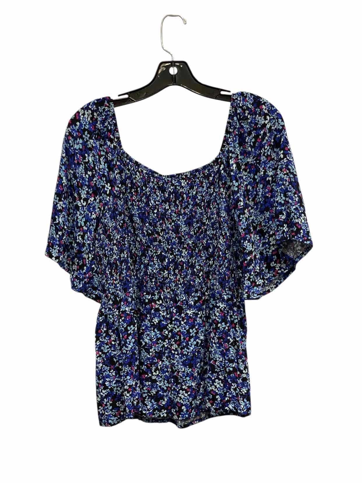 Studio B by Bobeau Size M Blue Floral Short Sleeve Shirts