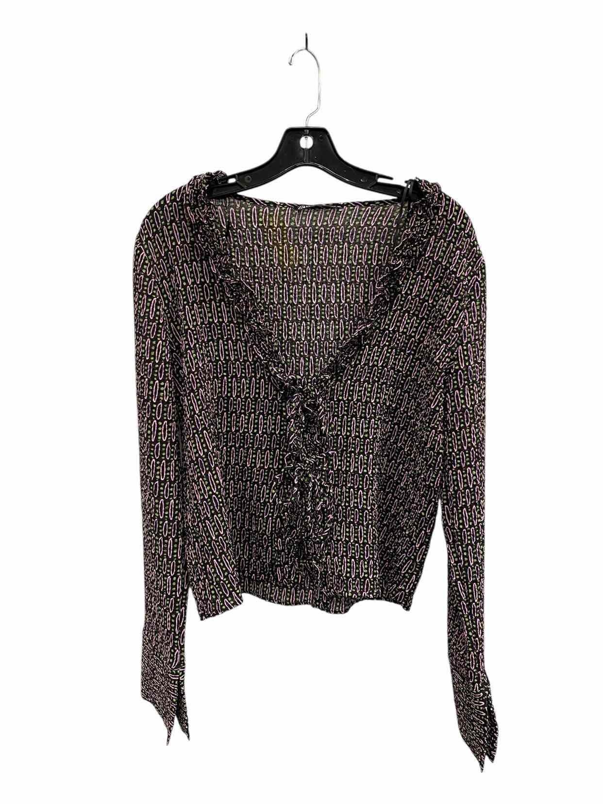 Zara Basic Size XL Black Pink Print Long Sleeve Shirts