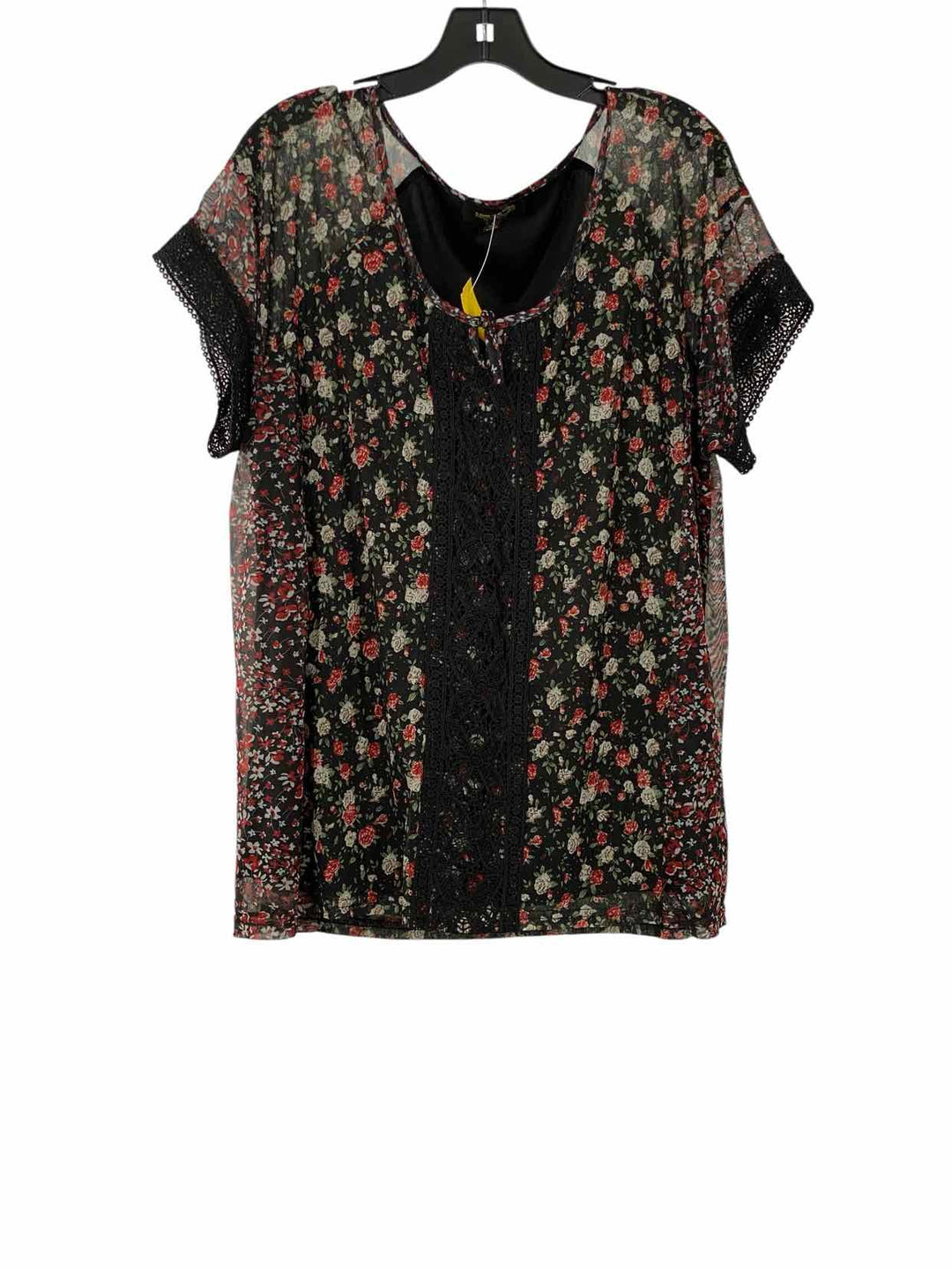 Anne Klein Size 2X Black White Floral Short Sleeve Shirts