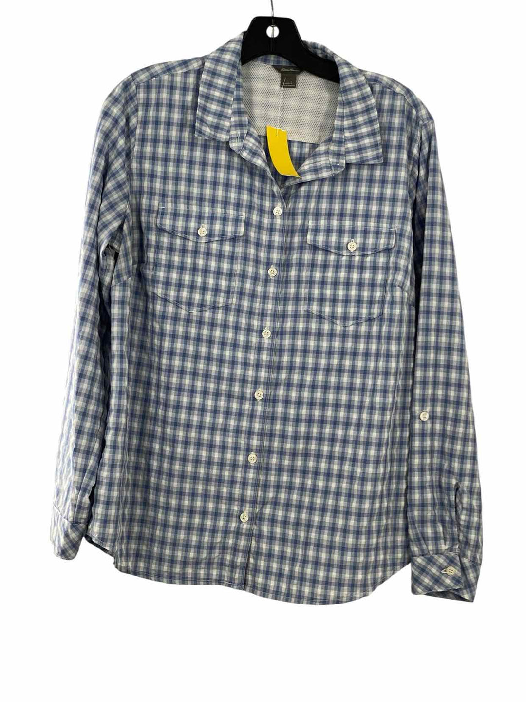 Eddie Bauer Size L Blue White Plaid Long Sleeve Shirts
