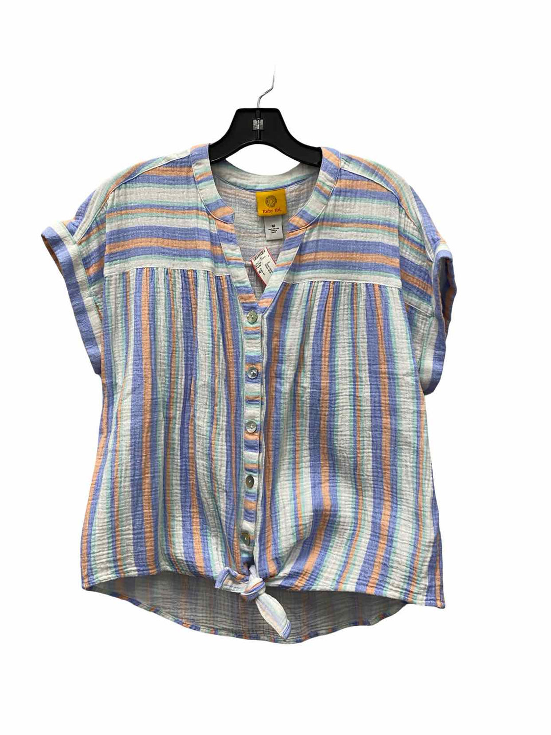 Ruby Rd Size M White Multi Striped 100% cotton Short Sleeve Shirts