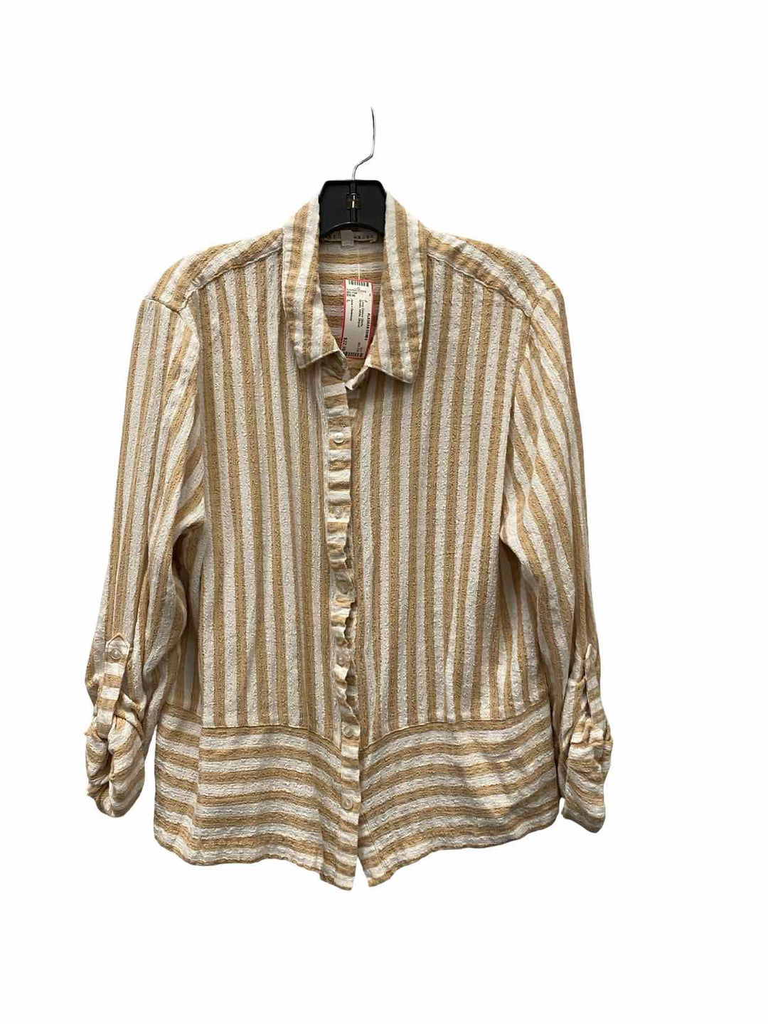 Jane + Delancey Size L Brown White Striped Long Sleeve Shirts
