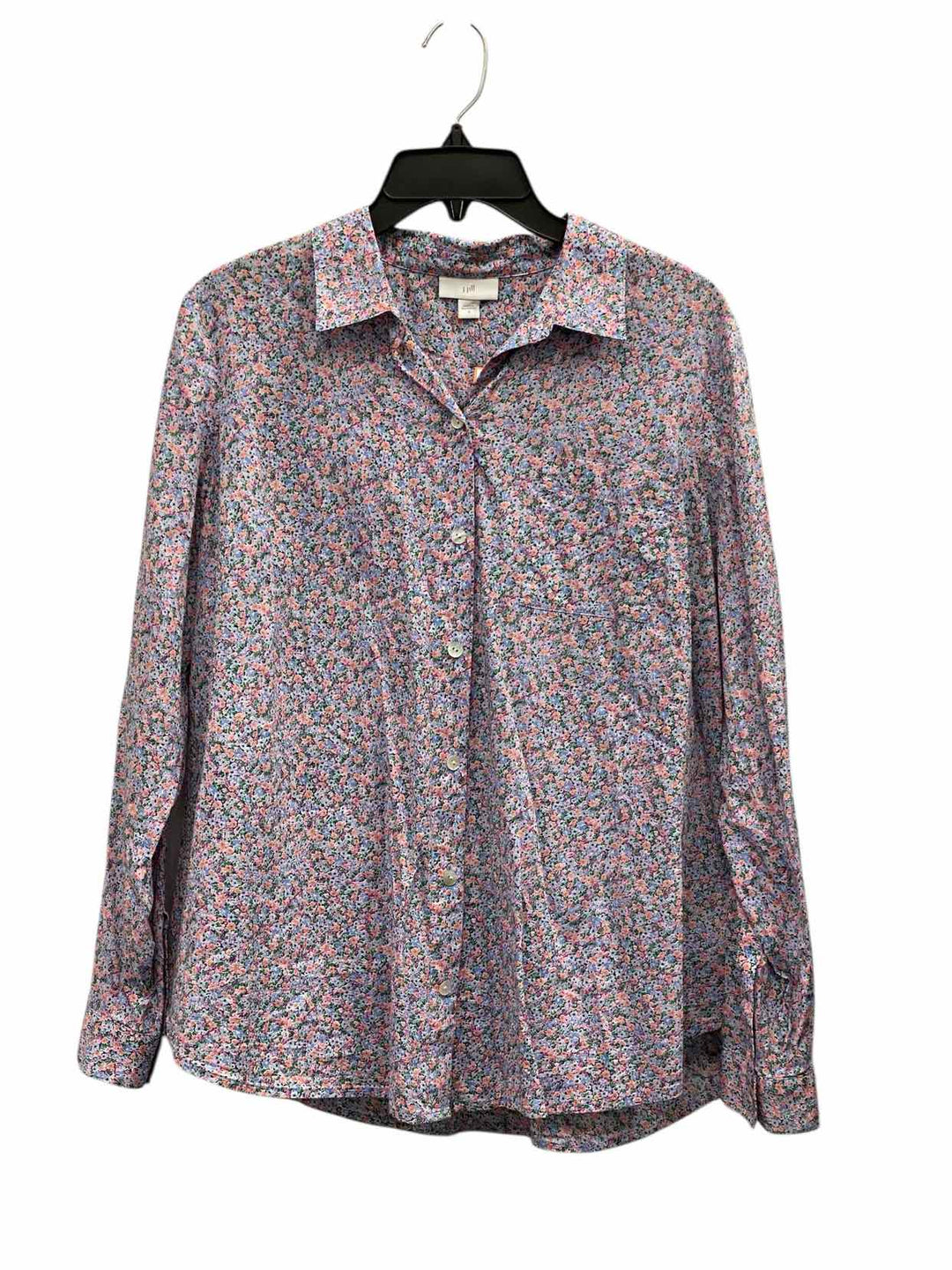 J Jill Size S Blue Multi Floral Long Sleeve Shirts