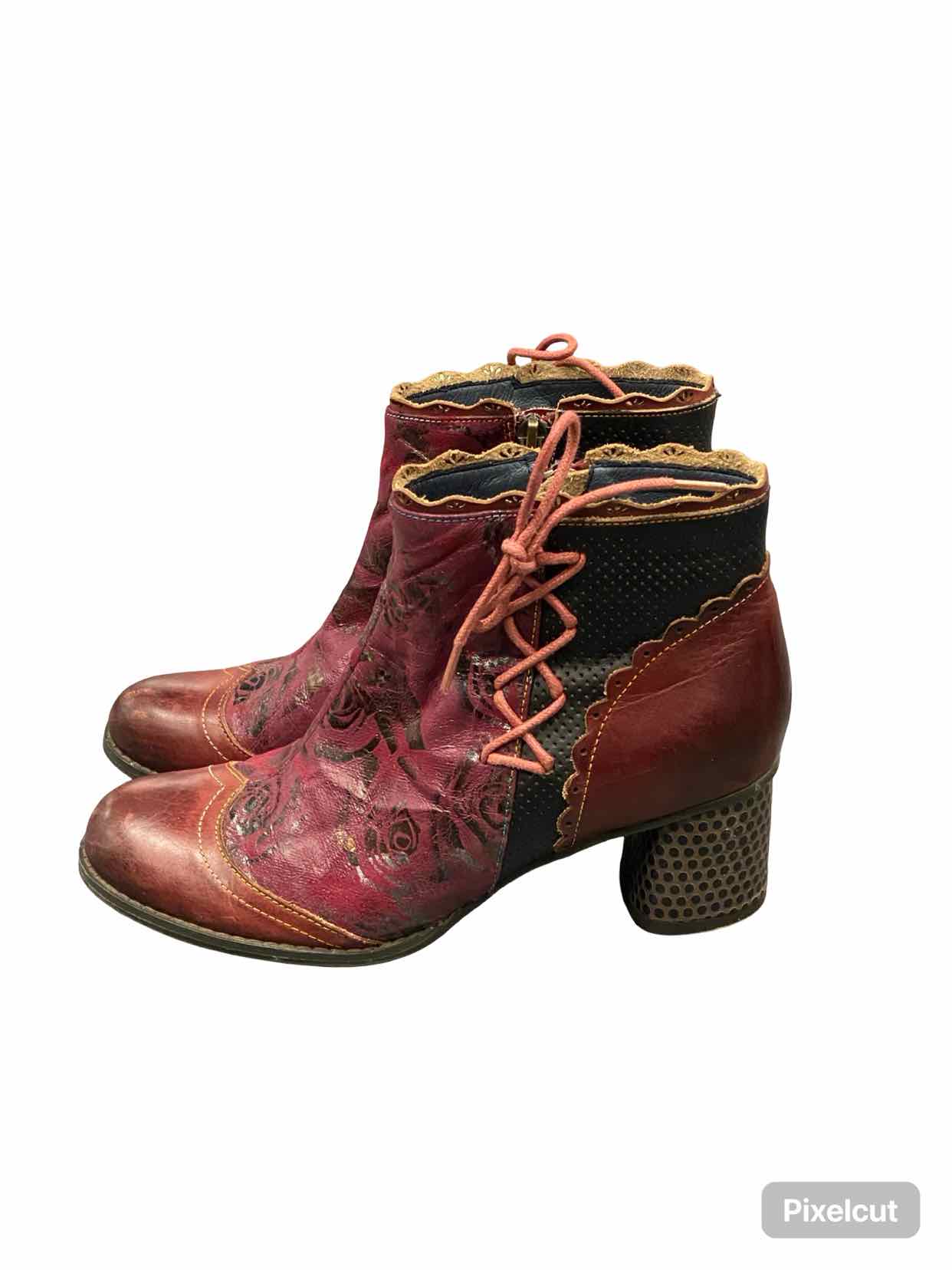 L'Artiste by Springstep Shoe Size 38 Red Leather Leafeel Boots(Ankle)